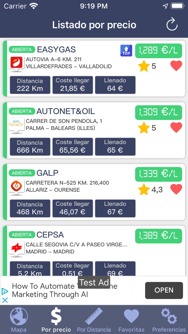 Puedes filtrar por bandera de gasolinera, por tipo de combustible, por distancia, puedes añadir tus descuentos propios...